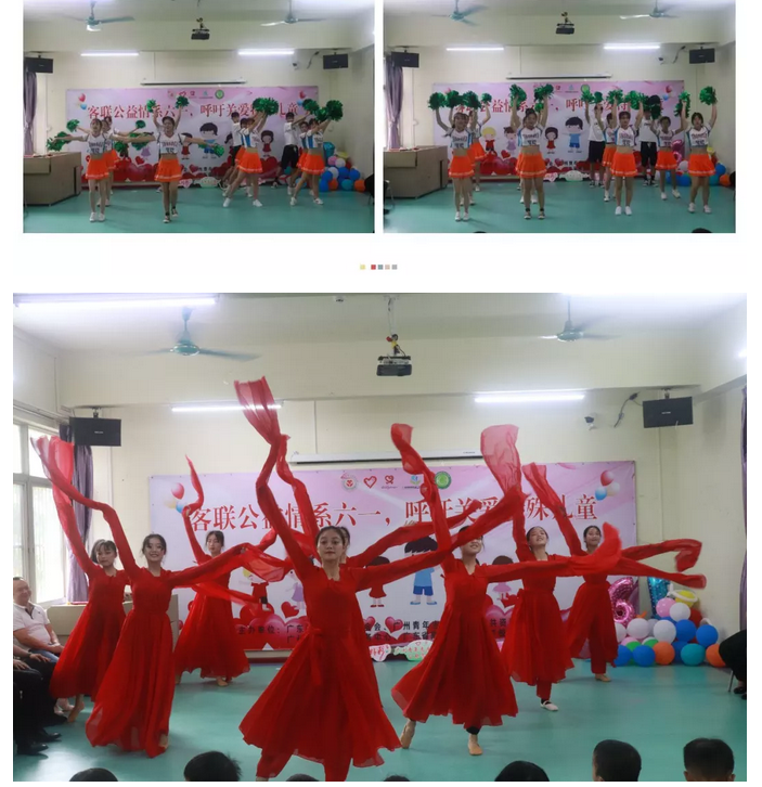 之后便是我校學生精心為小朋友們精心準備了六個極具充滿青春活力的節(jié)目,整場表演烘托出溫馨快樂的節(jié)日氛圍。