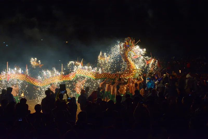 埔寨火龍是我們的春節(jié)傳統(tǒng)活動(dòng),據(jù)說(shuō)至今三百年歷史了。“火龍”由鐵絲、竹料、紙等扎成,繪上鱗、角、爪,龍首至龍尾長(zhǎng)達(dá)數(shù)十米。在龍身上安裝煙花、炮竹、火箭多達(dá)數(shù)千枚,龍頭、龍尾裝的火藥更數(shù)不勝數(shù)。一條火龍由三四十個(gè)赤膊青年手擎,加上鼓樂(lè)手、龍蝦、金魚(yú)等人,整個(gè)隊(duì)伍達(dá)200多人。
