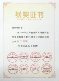 喜報(bào) !我校在江西省2021年青少年網(wǎng)絡(luò)安全與信息科技大賽中榮獲“小