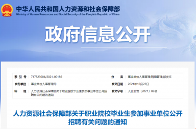近日,人力資源社會保障部印發(fā)《關(guān)于職業(yè)院校畢業(yè)生參加事業(yè)單位公開招聘有關(guān)問題的通知》(以下...
