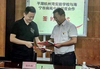 海寧南苑中學(xué)與平湖杭州灣實(shí)驗(yàn)學(xué)校教育交流與深度合作簽約