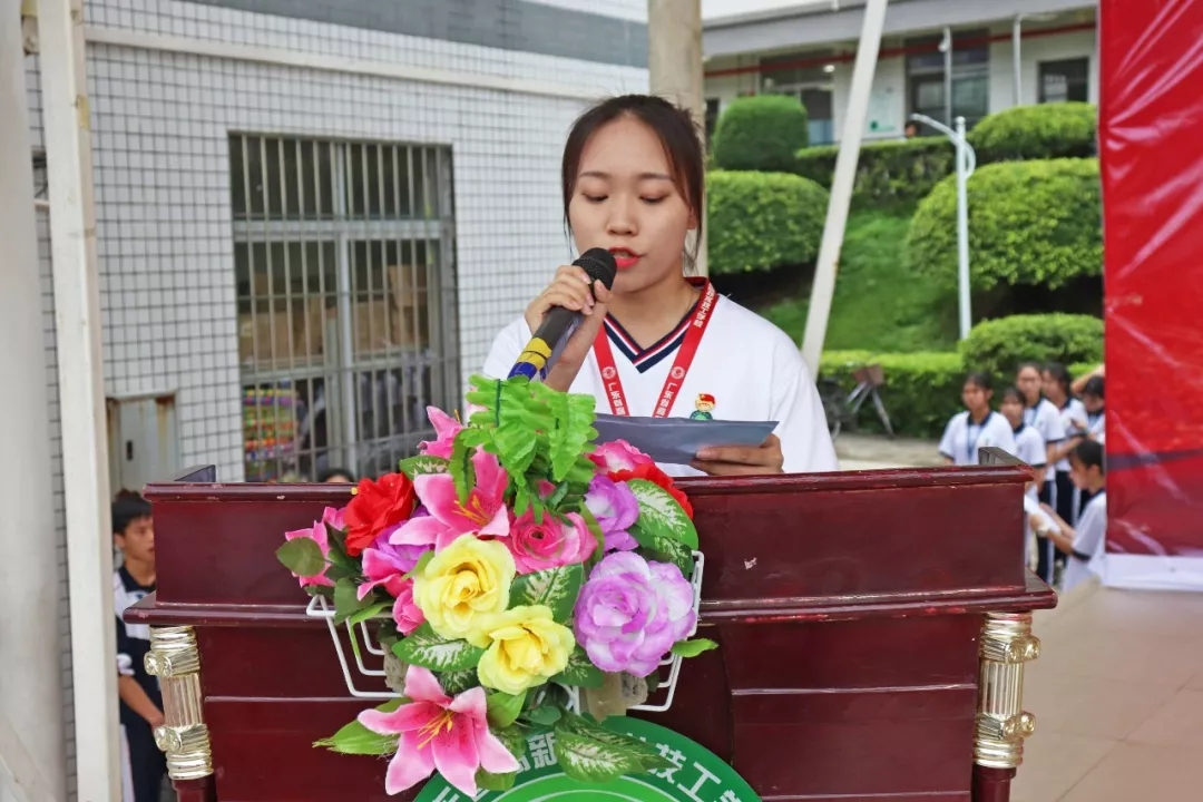 廣東省高新技術(shù)高級技工學(xué)校新團員入團宣誓儀式暨優(yōu)秀團組織表彰大會于2019年5月27日16:10在西區(qū)足球場隆重舉行。參加本次大會的領(lǐng)導(dǎo)有:文建友副校長、學(xué)生處曾成處長、學(xué)生處陳偉副處長、團委書記劉榮榮、汽車工程系鄭大國主任、藝術(shù)與計算機系王慶有副主任、經(jīng)貿(mào)系姚幸連副主任。參加大會的還有在校1833名團員。