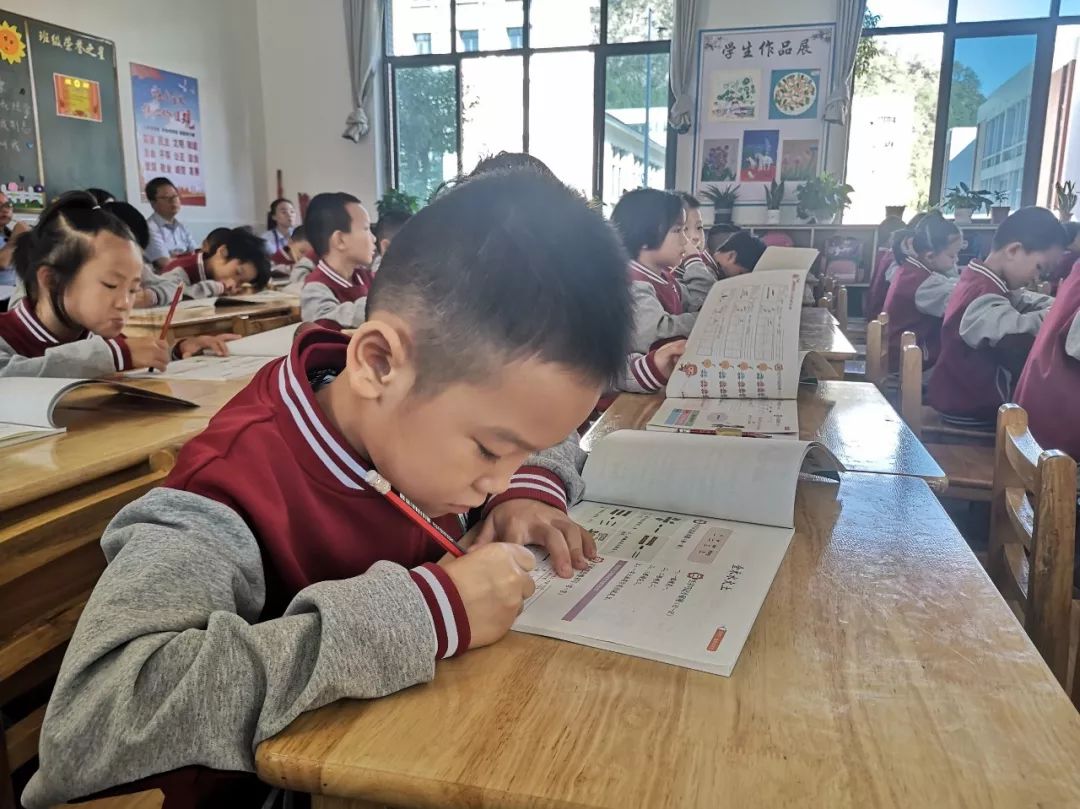 在朗朗的書聲中,丁惠臻老師走進(jìn)了一(2)班的教室。丁老師用“金木水火土”作為小組名稱,既鞏固了舊知識(shí),又調(diào)動(dòng)了孩子的積極性。通過(guò)講解象形文字,孩子們對(duì)文字產(chǎn)生敬畏之心。讓生字開(kāi)花又豐富了學(xué)生的詞匯量。運(yùn)用田字格“九點(diǎn)式”書寫方法,指導(dǎo)學(xué)生規(guī)范書寫。