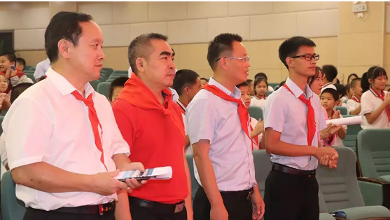 在大隊長朱庭萱的帶領下,全體少先隊員在隊旗下光榮宣誓和呼號:時刻準備著,為共產主義事業(yè),貢獻一切力量!他們表示決心聽從黨的教導,熱愛祖國,熱愛人民,好好學習,好好鍛煉,努力成為社會主義建設需要的合格人才,做共產主義事業(yè)接班人。