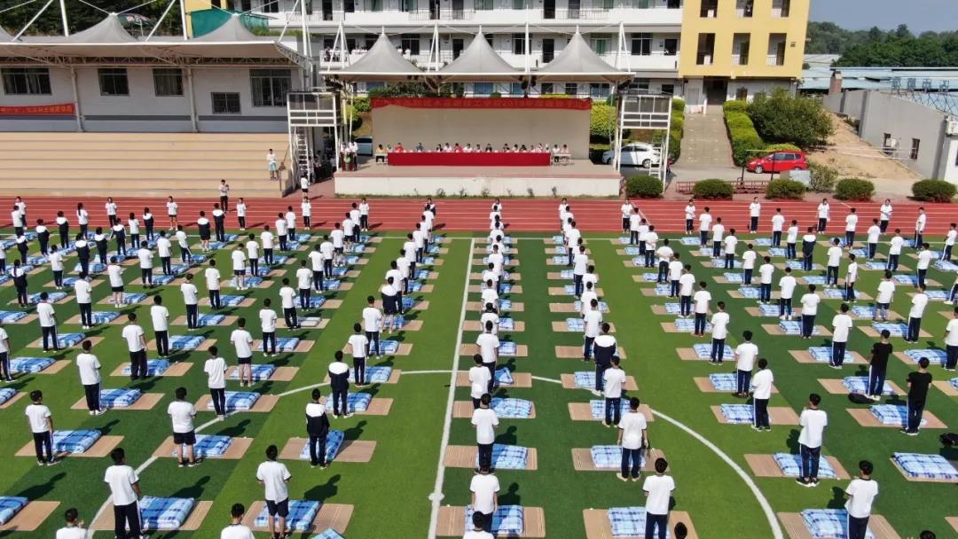 活動開場,全體師生奏唱校歌,很快激烈的疊被子比賽開始了。比賽實行分組對抗淘汰制,三局定勝負。