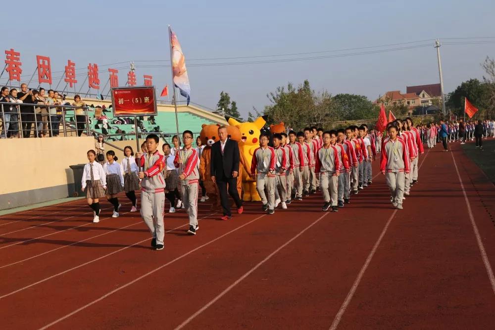 在全體同學的熱切期盼中,在老師們的辛勤付出下,10月24日上午7點,我校隆重舉行第三屆田徑運動會開幕式。理事長肖家興博士、曹躍平校長、黨支部書記潘清、高中部執(zhí)行校長孫立新、初中部執(zhí)行校長謝永中、分管德育與安全校長時兆鵬等領導出席了本次開幕儀式。