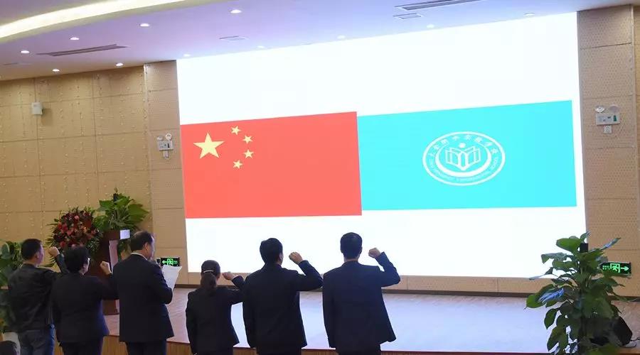 隨后王躍平校長帶領(lǐng)校級(jí)領(lǐng)導(dǎo)就職宣誓。