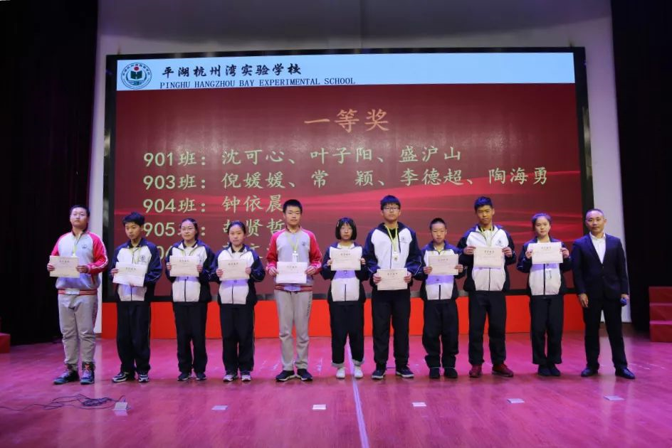 除了九年級(jí)的科學(xué)競(jìng)賽外,本周還在初中部進(jìn)行了《我與平湖杭州灣實(shí)驗(yàn)學(xué)校的故事》作文競(jìng)賽,會(huì)上吳正龍主任宣讀了初中部三個(gè)年級(jí)或一、二、三等獎(jiǎng)的學(xué)生名單并對(duì)獲獎(jiǎng)學(xué)生進(jìn)行頒獎(jiǎng)。