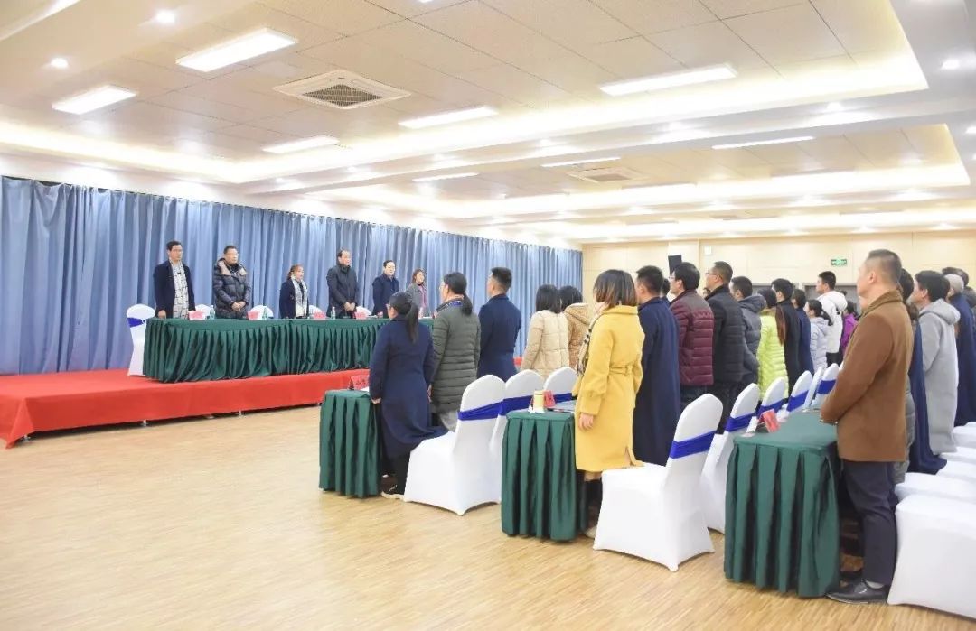 冬至到,天易寒,但衡實校園知行樓二樓音樂廳卻暖意濃濃——大余衡水實驗學(xué)校于12月23日晚上隆重召開第一屆教職工大會。出席本次教代會的有大余衡實校長兼黨支部書記王躍平及全體班子成員和69名教職工代表。