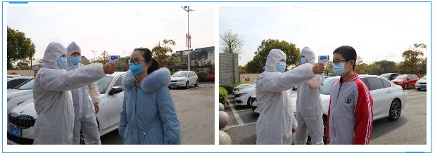 第二位學(xué)生周同學(xué)通過紅外線測溫儀顯示體溫37.8,值班老師孟斌健馬上把他攔住并安慰學(xué)生稍微等待一下,并當(dāng)場把他交給負(fù)責(zé)引領(lǐng)的趙璐群老師。趙老師馬上向班主任和學(xué)校分管領(lǐng)導(dǎo)匯報(bào)情況。