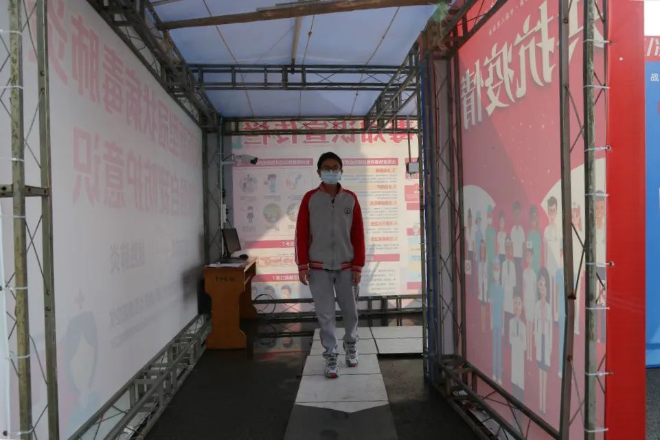 手續(xù)完備以后,符合條件的學(xué)生依次通過紅外線測溫儀第二次測量體溫。第一位學(xué)生通過紅外線測溫儀顯示體溫36.7,可以進(jìn)入學(xué)校校園(家長返回)。