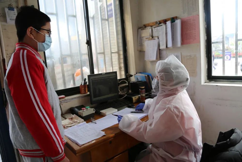 醫(yī)務(wù)室汪醫(yī)生用水銀體溫計(jì)給周同學(xué)測量體溫為37.3度后,按照一人一表仔細(xì)詢問和核對:你和你家人14天內(nèi)是否離開過嘉興?是否接觸過來自武漢市及周邊地區(qū)、或境內(nèi)其他有病例報(bào)告的社區(qū)、或境外疫情嚴(yán)重國家或地區(qū)的發(fā)熱或有呼吸道癥狀的患者?是否接觸過湖北或境外歸國人員?