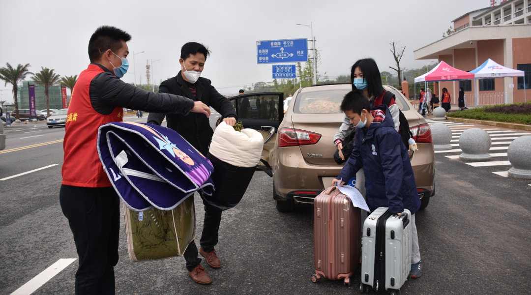 家長深情送別孩子返校