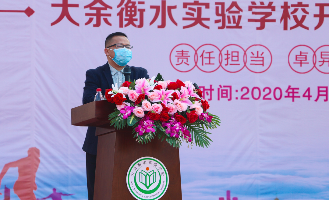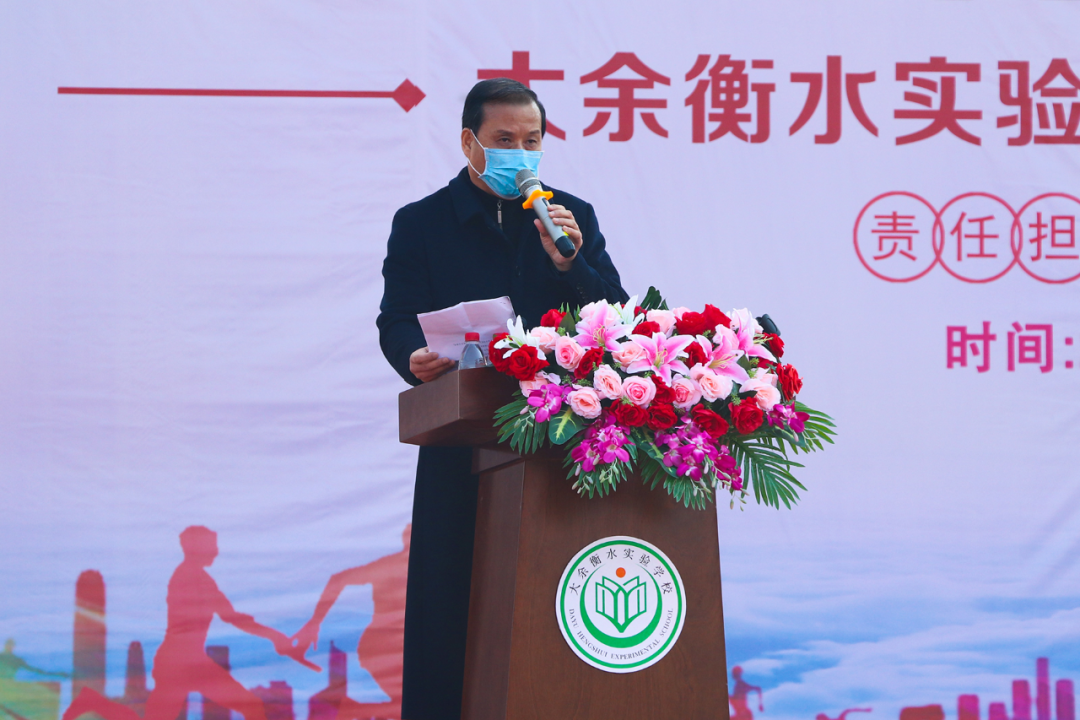 大余衡水實(shí)驗(yàn)學(xué)校書記、校長王躍平作《彰顯家國情懷 提升生命素養(yǎng)》的新學(xué)期致辭。王校長表示,在新冠肺炎爆發(fā)的特殊時(shí)期,黨和國家領(lǐng)導(dǎo)人以民為本的責(zé)任和擔(dān)當(dāng),全國人民同心同德、一往無前團(tuán)結(jié)抗疫,讓我們感受到了大中國的團(tuán)結(jié)、友善、互助和擔(dān)當(dāng);一線抗疫醫(yī)護(hù)工作者、人民解放軍、志愿者們的無私奉獻(xiàn),充分彰顯了他們舍小家為大家的家國情懷。王校長告誡衡實(shí)莘莘學(xué)子,在困境面前要樹立正確的世界觀、人生觀、價(jià)值觀,培養(yǎng)愛國愛民、與人為善的家國情懷,在防疫抗災(zāi)過程中,提升自己的生命素養(yǎng),學(xué)會(huì)完善自我,知難逆行。同時(shí)王校長寄語學(xué)生,要珍惜時(shí)光,提高學(xué)習(xí)效率,決戰(zhàn)中考、高考!