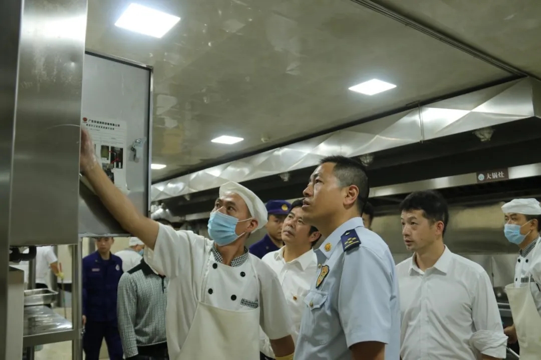 隨后,消防救援大隊一行來到學(xué)校食堂后廚,抽查食堂員工消防知識,并現(xiàn)場指導(dǎo)工作人員使用消防設(shè)備。