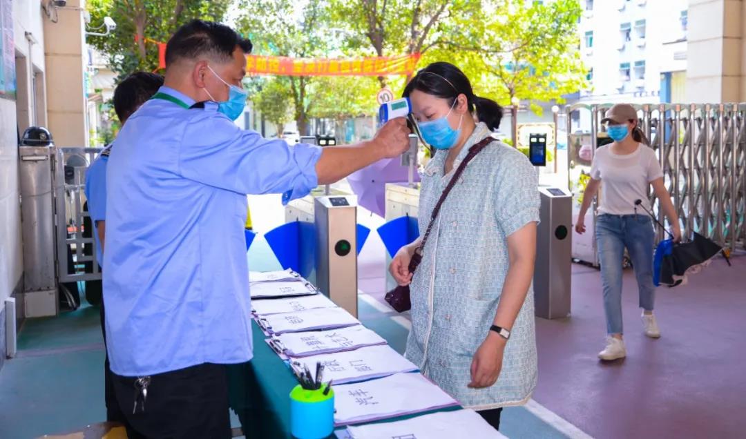 15:00,學生處保衛(wèi)科全體保安人員上崗,安排看守學校各個大門,在篩查工作完成前禁止師生外出學校,以及暫不接受探訪,進入校園的教職工、家屬等須佩戴口罩、提供粵康碼,接受詳實登記和體溫檢測;對從校園外運輸入校園的物資,采取酒精噴灑式消毒處置措施。