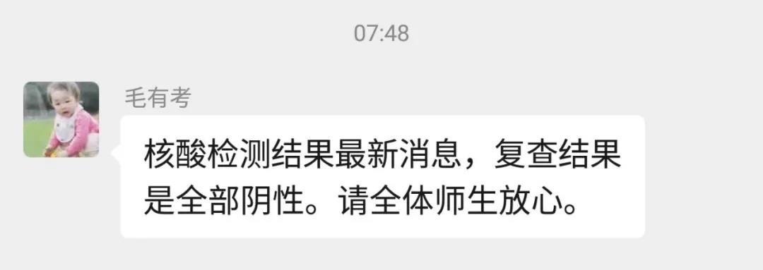 在上級部門的關懷和支持下,10月16日下午,廣東省高新技術高級技工學校進行了全員篩查,次日清晨公布了結果:高新技校內的全體師生、家屬、工勤人員等7383人,全部為 核酸檢測陰性!