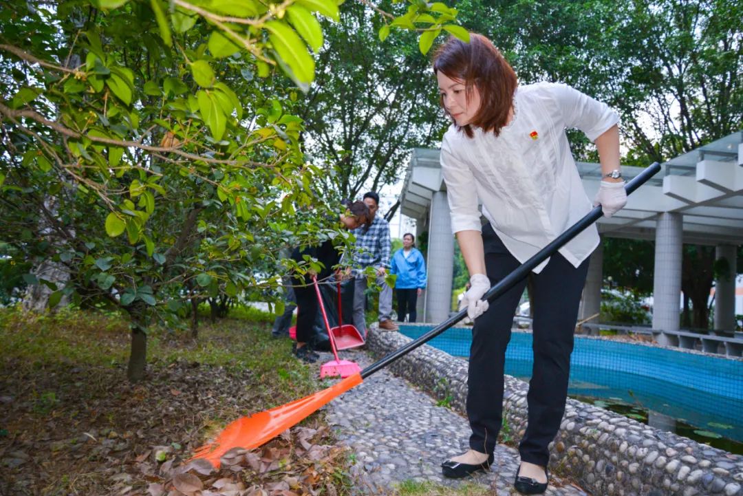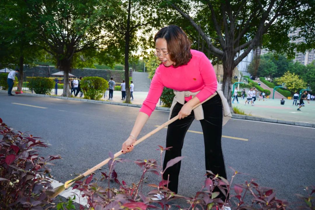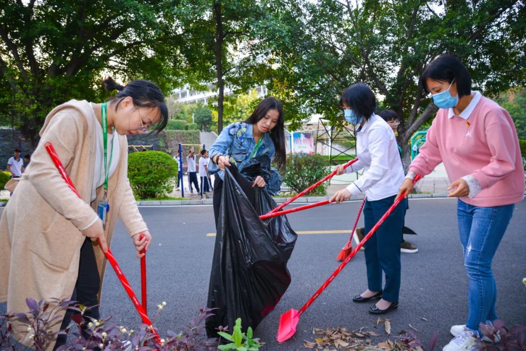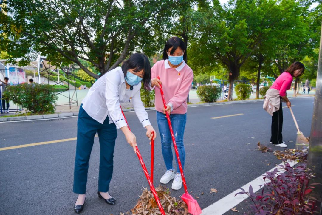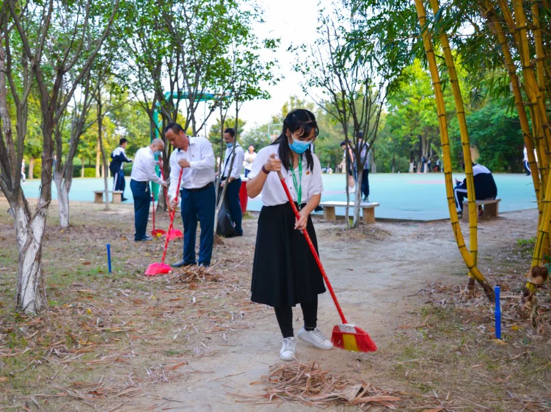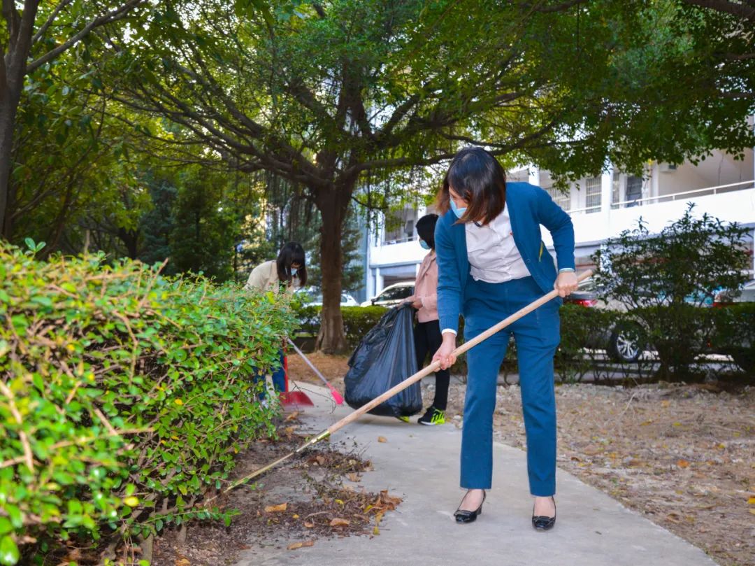 簽約儀式結束后,兩個黨支部全體黨員分成4個小組,聯(lián)合開展校園衛(wèi)生清潔活動。