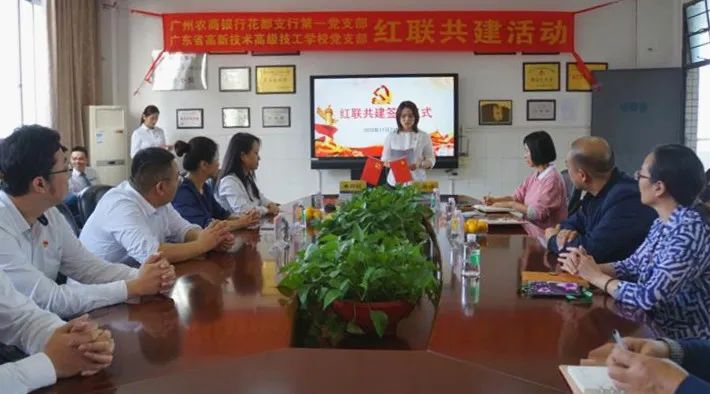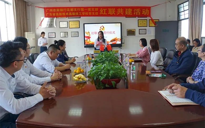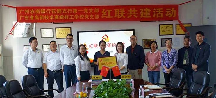 為進一步加強我校黨組織建設,提升新形勢下黨支部工作成效,實現(xiàn)黨建優(yōu)勢互補,我校黨支部與廣州農商銀行花都支行第一黨支部舉行“紅聯(lián)共建”簽約儀式,開展黨建共建活動。