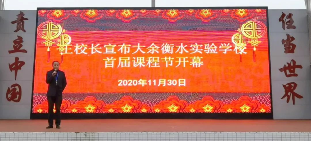 為促進教師專業(yè)發(fā)展,實施課堂教學(xué)改革,培育良好研學(xué)風(fēng)尚,積極轉(zhuǎn)化教研成果,全面提升教育質(zhì)量,充分展示我校建校以來開設(shè)的各級各類課程的風(fēng)采,促進我校各級各類課程的建設(shè)和提升,踐行“責(zé)任擔(dān)當(dāng) 卓異天下”的校訓(xùn),落實“立德樹人”的育人宗旨,形成學(xué)校辦學(xué)特色。11月30日上午,大余衡水實驗學(xué)校隆重舉行首屆課程節(jié)啟動儀式,大余衡水實驗學(xué)校總校長王躍平宣布大余衡水實驗學(xué)校首屆課程節(jié)開幕。本次課程節(jié)主題為“提升課程素養(yǎng),展示衡實風(fēng)采”。課程節(jié)為期一個月,旨在讓教師和學(xué)生展示和體驗多元課程。