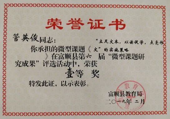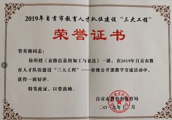 管英?。褐袑W(xué)一級(jí)教師,市骨干教師、市優(yōu)秀教育工作者,長(zhǎng)期擔(dān)任市縣信息技術(shù)學(xué)科教學(xué)比賽評(píng)委。