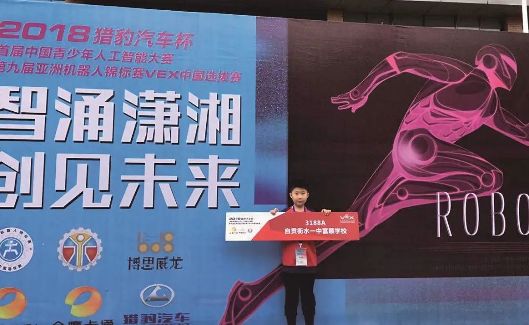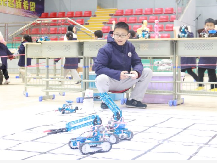 學(xué)生在2019年中小學(xué)電腦作品大賽機(jī)器人競(jìng)賽中獲初中組make X工程挑戰(zhàn)賽一等獎(jiǎng)。