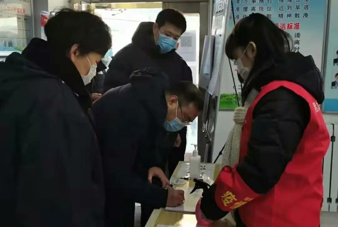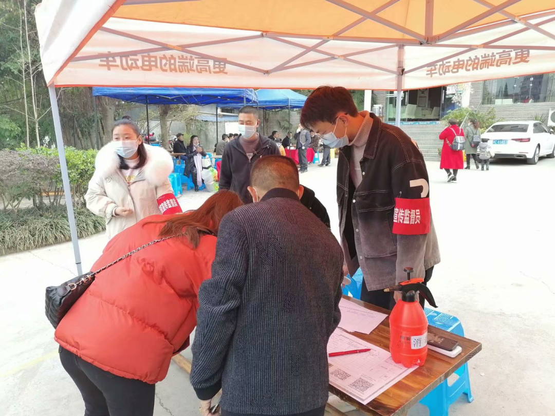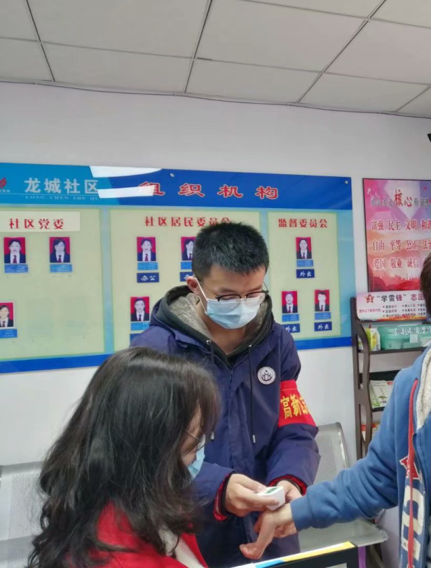 ▲ 協(xié)助社區(qū)開展入戶登記工作,為居民進(jìn)行體溫監(jiān)測,并簽署居家承諾書。